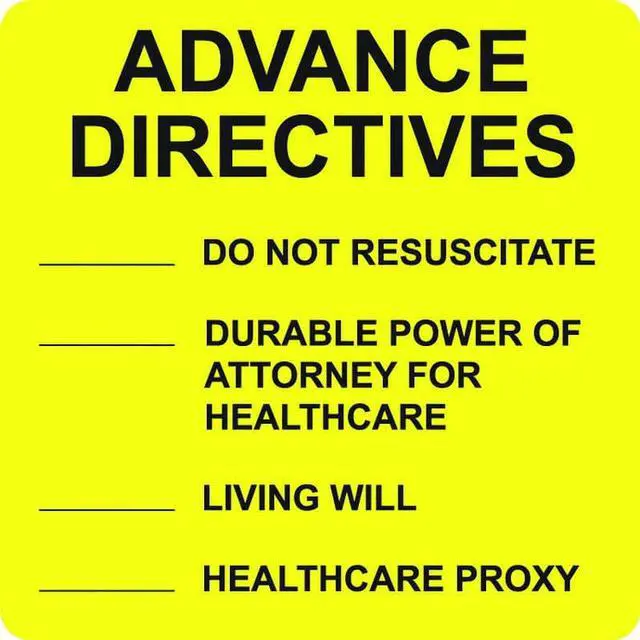 Advanced Directive Labels, ADVANCE DIRECTIVE - Fl Yellow, 2-1/2" X 2-1/2" (Roll of 390)