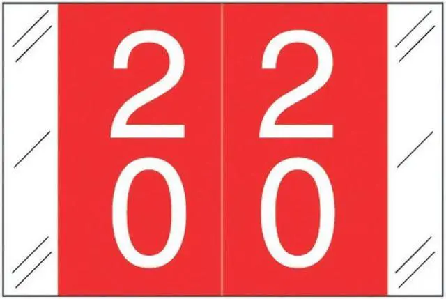 These Barkley FDSTM Compatible Double Digit Numeric "20" Labels feature a wrap-around solid Red bar and a White "20". Each roll contains 50 of each of the 10, 2-digit