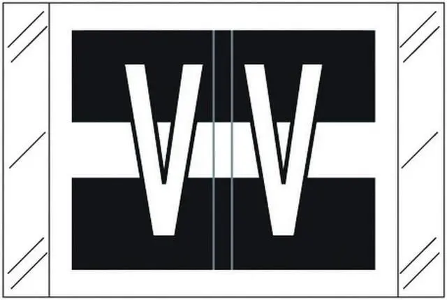 These Tabbies 12030 Series Compatible "V" 100# Polylaminated stock Labels with a White "V" printed on a Black, and White background. Label Size: 1-1/2" W x 1" H, Before Folding.