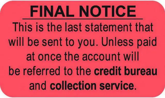 Billing Collection Labels, Fl Red - FINAL NOTICE, 1-1/2" W X 7/8" H (Roll of 250)