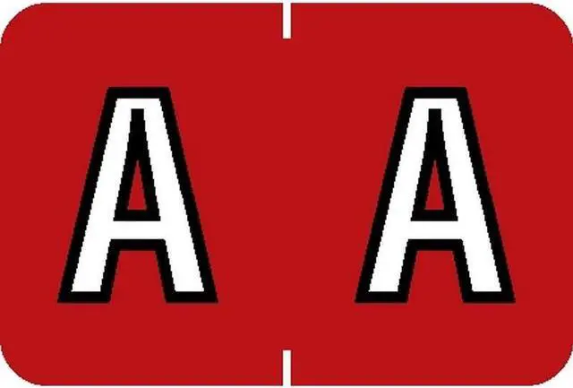 These Barkley ABKM Compatible "A" Labels feature a wrap-around solid Red bar and a White "A" outlined in Black and printed on a white background. Label Size: 1-1/2" W X 1" H, Before Folding. Laminated for Protection