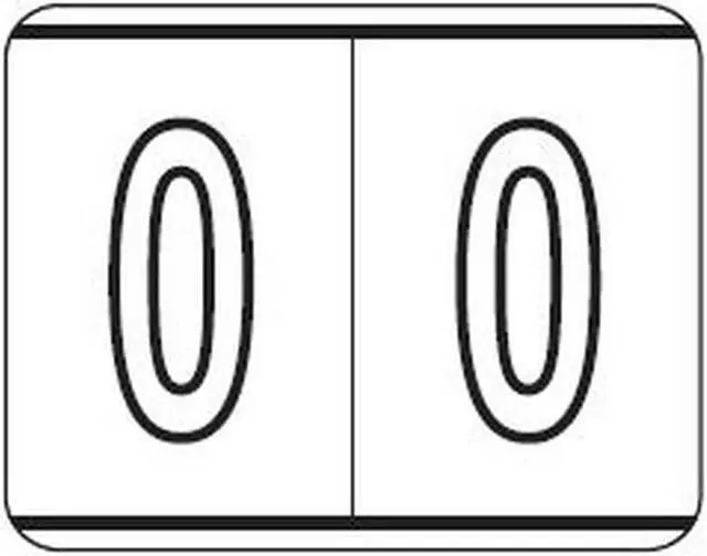 Kardex Compatible "0" Labels feature a wrap-around solid White bar with a White reversed "0" outlined in Black and printed on a White background. Label Size: 1-1/2" W x 1-1/4" H, Before Folding.