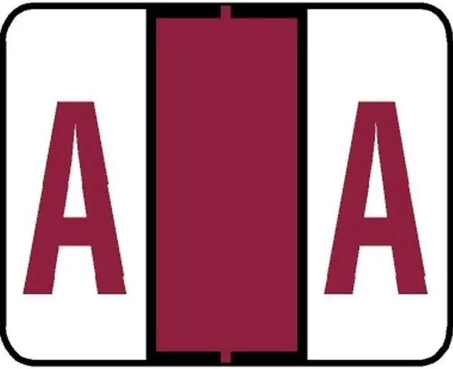 These Tab 1283 Series Compatible "A" Labels feature a wrap-around solid Dark Pink bar and a Dark Pink "A" printed on a white background. Label Size: 1 1/4" W x 1" H, Before Folding.