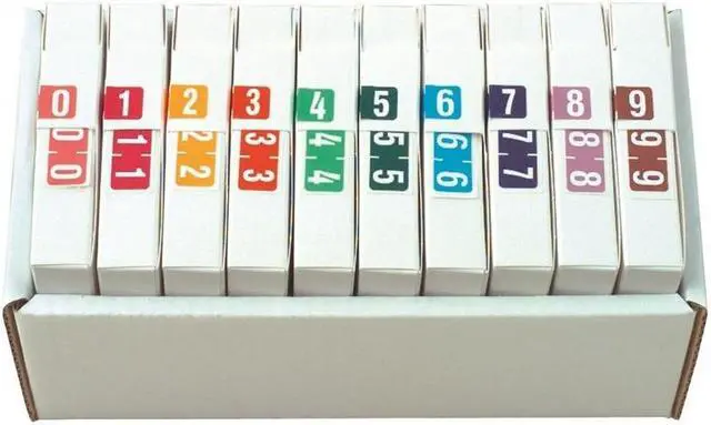 Tab Compatible Mini Numeric Labels, Vinyl Kimdura Stock, 1/2" X 1", Complete Set - 10 Rolls of 500, 10 distinct colors.
