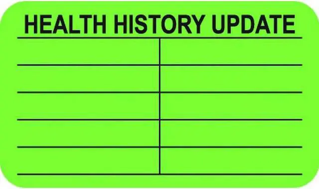 Chart Labels, "Health History Update", Fluorescent Green, 1-1/2" x 7/8" (Roll of 250)