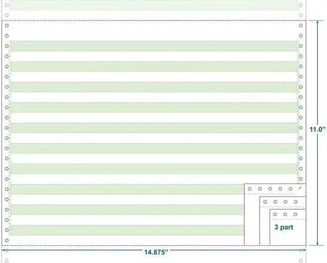 3-Ply Carbonless Paper, 1/2" Green Bar, Form Size 14-7/8" x 11" (W x H) (Carton of 1200)
