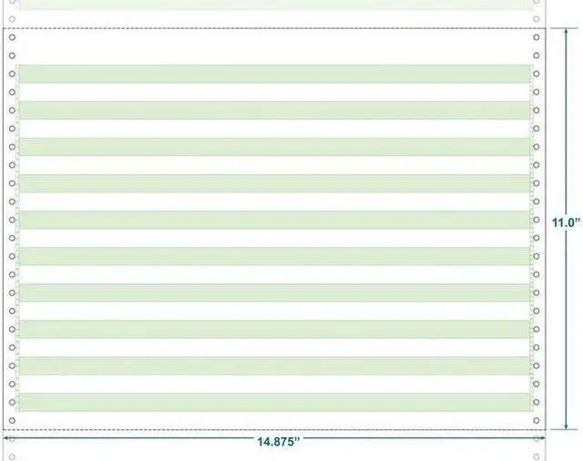 14-7/8" x 11" (W x H) Continuous 15# Computer Paper, 1/2" Green Bar (Carton of 3500)