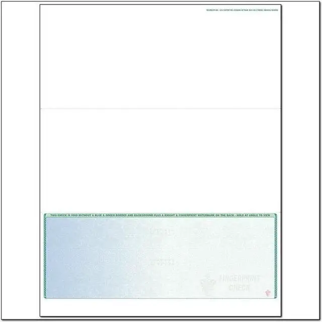 Blue to Green Rainbow Laser Check, Bottom Position, Fingerprint II, Tri-Fold (Ream of 500); Fingerprint II; Tri-Fold.