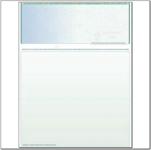 Get a tri-fold business check with upgraded security with this Blue to Green Top Position Rainbow Laser Check at Supplies Shops. Order now.