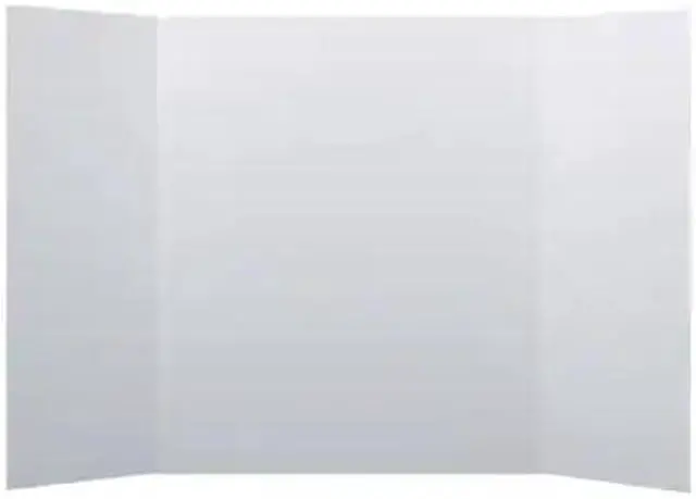 Constructed from sturdy lightweight 1-ply corrugated fiberboard with overlapping side panels that make transporting the board easy. The smooth white surface has a matte finish that easily accepts markers, crayons, paints and adhesives. Back of board is brown kraft. Measures 24" high x 48" wide overallside panels measure 24" high x 12.75" wide and the center panel measures 24" high x 22.5" wide. Pack of 24