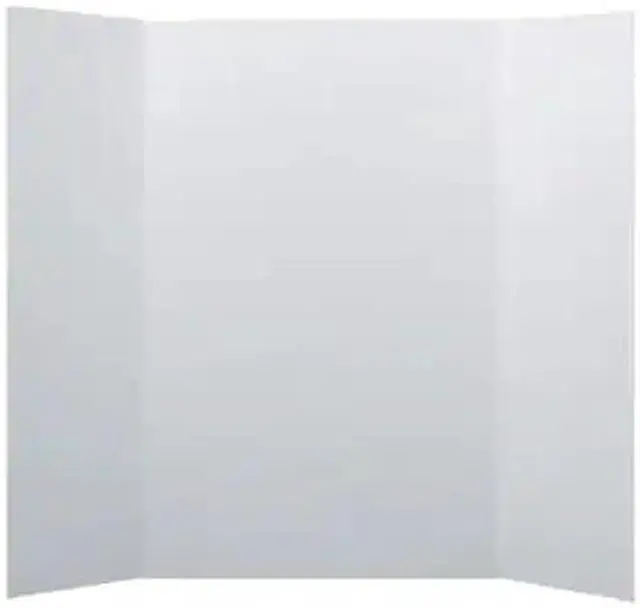 Constructed from 1-ply corrugated fiberboard with side panels that meet in the middle. The smooth white surface has a matte finish that easily accepts markers, crayons, paints and adhesives. Back of board is brown kraft. Measures 36" high x 48" wide overallside panels measure 36" high x 12" wide and the center panel measures 36" high x 24" wide. Pack of 24