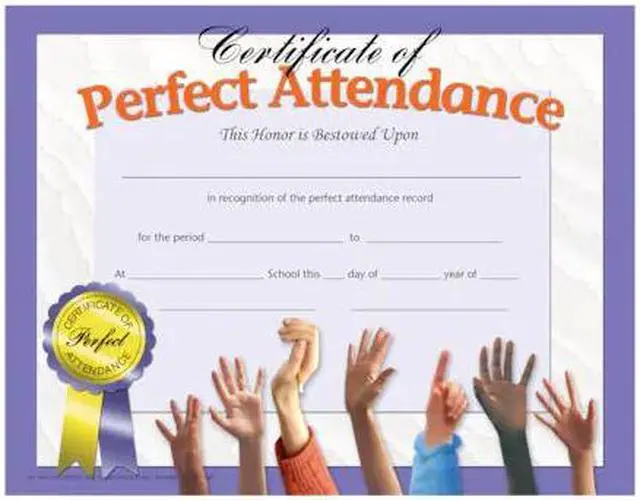 Certificate of Perfect Attendance is a great way for teachers to reward students for not missing a day of school. These Hayes student certificates feature a light purple border that are printed in full color on high quality matte paper. Perfect to give out to student at end of the year parties and award ceremonies. They can be personalized with the student's name and other information pertaining to the certificate. Downloadable template is available. Inkjet and laser printer friendly.They come in shrinked wrapped in bundles of 30 and measure 8.5" x 11". Pack of 5, for 150 certificates total. Best Seller.
