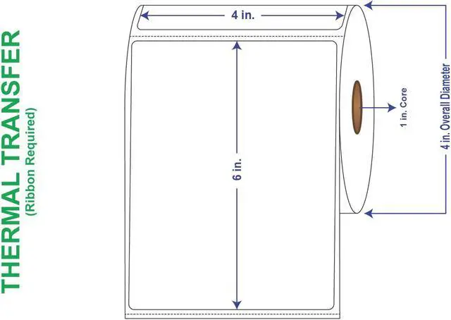 General Use Label w/ Perf Thermal Transfer Labels come 250 labels per roll and 4 rolls per carton for a total of 1000 labels per box. These thermal transfer label rolls have an 4" outer diameter and 1" core. Perforated thermal transfer labels have a horizontal perf every 6-1/8". A versatile general purpose permanent emulsion acrylic adhesive offers excellent initial tack and ultimate adhesion, especially at lower temperatures, without sacrificing high-speed converting. This adhesive meets the requirements of FDA CFR 175.105 for indirect food contact. The minimum application temperature for this adhesive is 30degF and the recommended service temperature range is -65degF to 200degF (-54degC to 93degC).