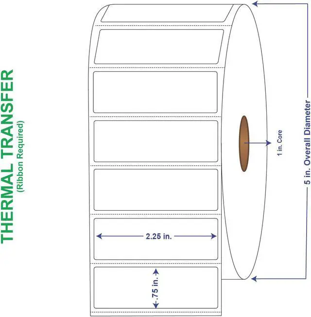 General Use Label w/ Perf Thermal Transfer Labels come 3000 labels per roll and 4 rolls per carton for a total of 12000 labels per box. These thermal transfer label rolls have an 5" outer diameter and 1" core. Perforated thermal transfer labels have a horizontal perf every 7/8". A versatile general purpose permanent emulsion acrylic adhesive offers excellent initial tack and ultimate adhesion, especially at lower temperatures, without sacrificing high-speed converting. This adhesive meets the requirements of FDA CFR 175.105 for indirect food contact. The minimum application temperature for this adhesive is 30degF and the recommended service temperature range is -65degF to 200degF (-54degC to 93degC).