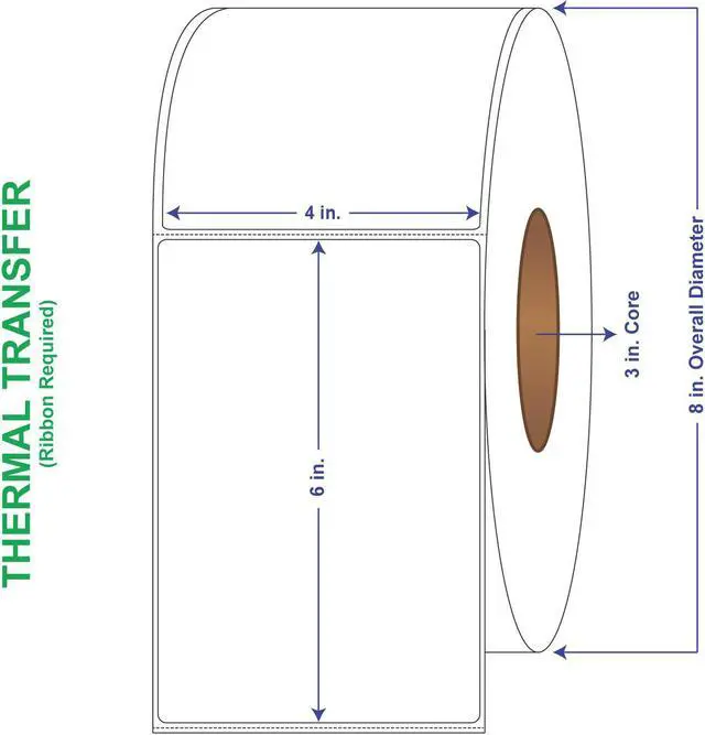 General Use Label w/ Perf Thermal Transfer Labels come 1000 labels per roll and 4 rolls per carton for a total of 4000 labels per box. These thermal transfer label rolls have an 8" outer diameter and 3" core. Perforated thermal transfer labels have a horizontal perf every 6-1/8". A versatile general purpose permanent emulsion acrylic adhesive offers excellent initial tack and ultimate adhesion, especially at lower temperatures, without sacrificing high-speed converting. This adhesive meets the requirements of FDA CFR 175.105 for indirect food contact. The minimum application temperature for this adhesive is 30degF and the recommended service temperature range is -65degF to 200degF (-54degC to 93degC).