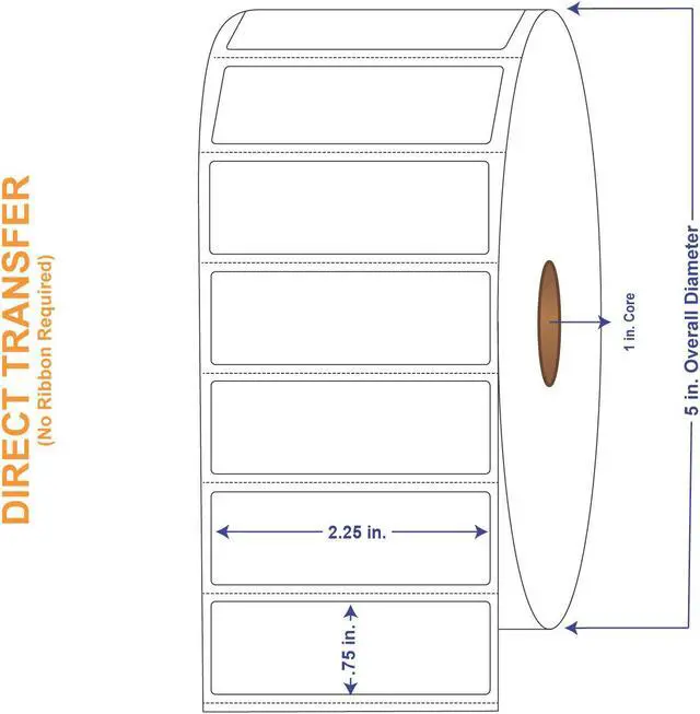 White Direct Print Thermal Labels measure 2-1/4" X 3/4" and have 3000 labels per roll with 4 rolls in a carton. It is made from a Fasson Direct-Therm 300LD facestock. Fasson Direct-Therm 300LD is a smooth, non-topcoated bright white paper with a high sensitivity thermal coating. It is intended for use in dry applications. Exposure to contaminants such as water, oil, alcohol and other liquids can affect the thermal layer. This product is suitable for use in a wide variety of direct thermal label printers, especially those typically used in industrial applications.