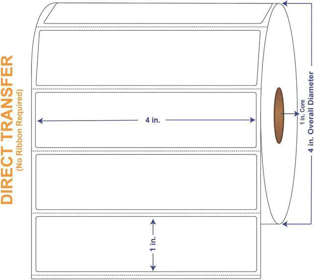 White Direct Print Thermal Labels measure 4" X 1" and have 1310 labels per roll with 4 rolls in a carton. It is made from a Fasson Direct-Therm 300LD facestock. Fasson Direct-Therm 300LD is a smooth, non-topcoated bright white paper with a high sensitivity thermal coating. It is intended for use in dry applications. Exposure to contaminants such as water, oil, alcohol and other liquids can affect the thermal layer. This product is suitable for use in a wide variety of direct thermal label printers, especially those typically used in industrial applications.