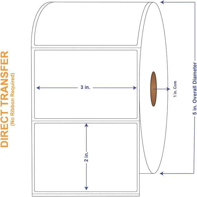 White Direct Print Thermal Labels measure 3" X 2" and have 1240 labels per roll with 4 rolls in a carton. It is made from a Fasson Direct-Therm 300LD facestock. Fasson Direct-Therm 300LD is a smooth, non-topcoated bright white paper with a high sensitivity thermal coating. It is intended for use in dry applications. Exposure to contaminants such as water, oil, alcohol and other liquids can affect the thermal layer. This product is suitable for use in a wide variety of direct thermal label printers, especially those typically used in industrial applications.