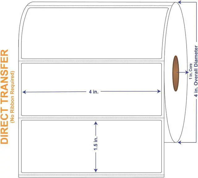 White Direct Print Thermal Labels measure 4" X 1-1/2" and have 960 labels per roll with 4 rolls in a carton. It is made from a Fasson Direct-Therm 300LD facestock. Fasson Direct-Therm 300LD is a smooth, non-topcoated bright white paper with a high sensitivity thermal coating. It is intended for use in dry applications. Exposure to contaminants such as water, oil, alcohol and other liquids can affect the thermal layer. This product is suitable for use in a wide variety of direct thermal label printers, especially those typically used in industrial applications.