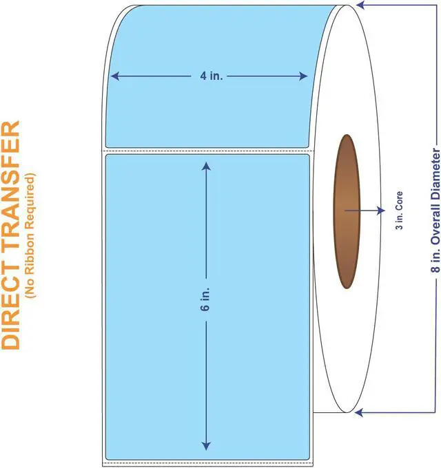 Blue Direct Print Thermal Labels measure 4" X 6" and have 1000 labels per roll with 4 rolls in a carton. It is made from a Fasson Direct-Therm 300LD facestock. Fasson Direct-Therm 300LD is a smooth, non-topcoated bright white paper with a high sensitivity thermal coating. It is intended for use in dry applications. Exposure to contaminants such as water, oil, alcohol and other liquids can affect the thermal layer. This product is suitable for use in a wide variety of direct thermal label printers, especially those typically used in industrial applications.