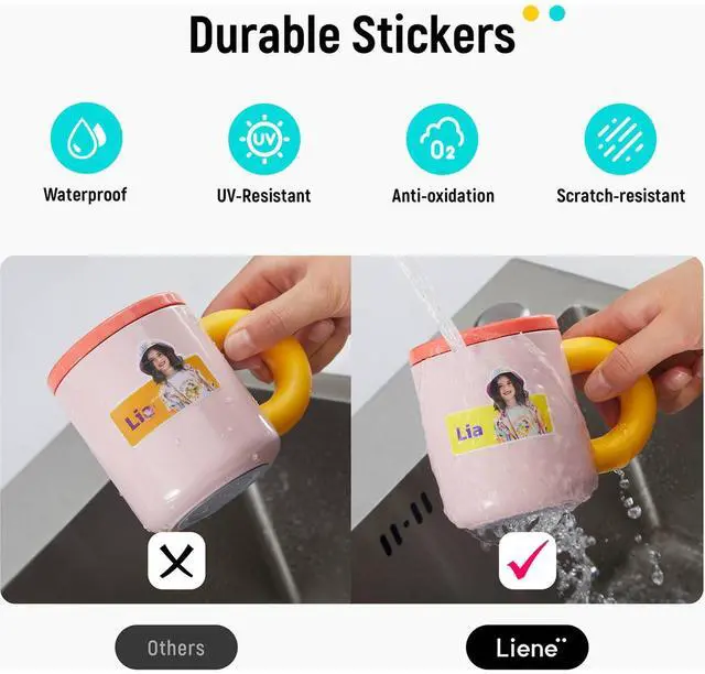 Easy & Clean ReplacementHeat sublimates dye into paper, no liquid ink needed, enabling smaller print cartridges. Easy cartridge replacement, hassle-free printing and less cleaning is required for the printer's interior.4 Layering (Dye-Sub) TechnologyLiene Picot S1 uses 4 Layering Technology (Dye-Sublimation) to print flawless photos instantly. Each sticker sheet is printed in layers of ribbon with a laminating process. So it's fade-resistant and water-resistant for long-lasting quality.Easy-Peel BackingExperience worry-free application with an easy-peel backing that leaves no adhesive residue and allows for repositioning.InspirationDiscover the endless possibilities of the Picot S1 and get inspired by what it can do for you