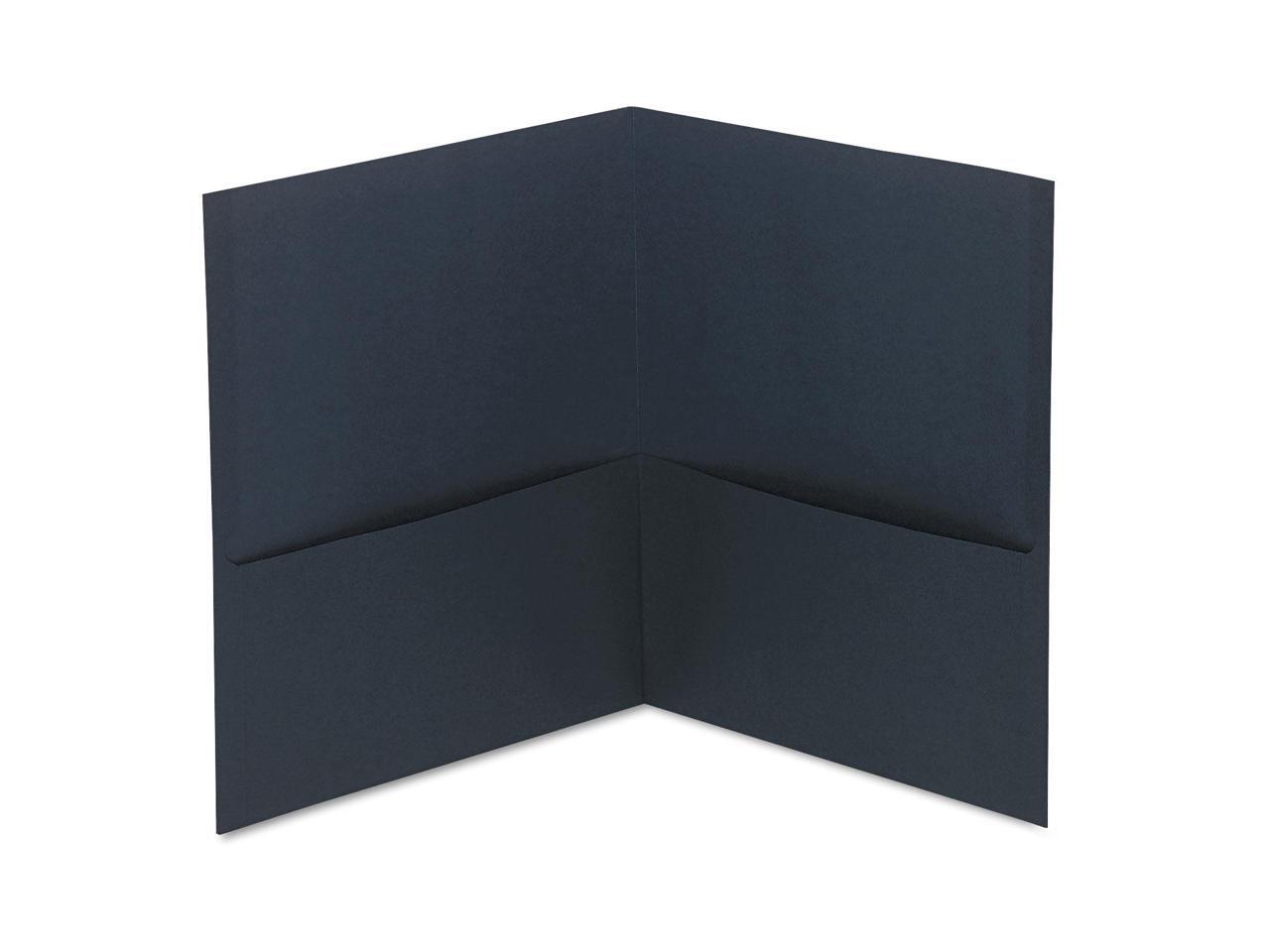 Two-Pocket Portfolio, Embossed Leather Grain Paper, Dark Blue, 25/box