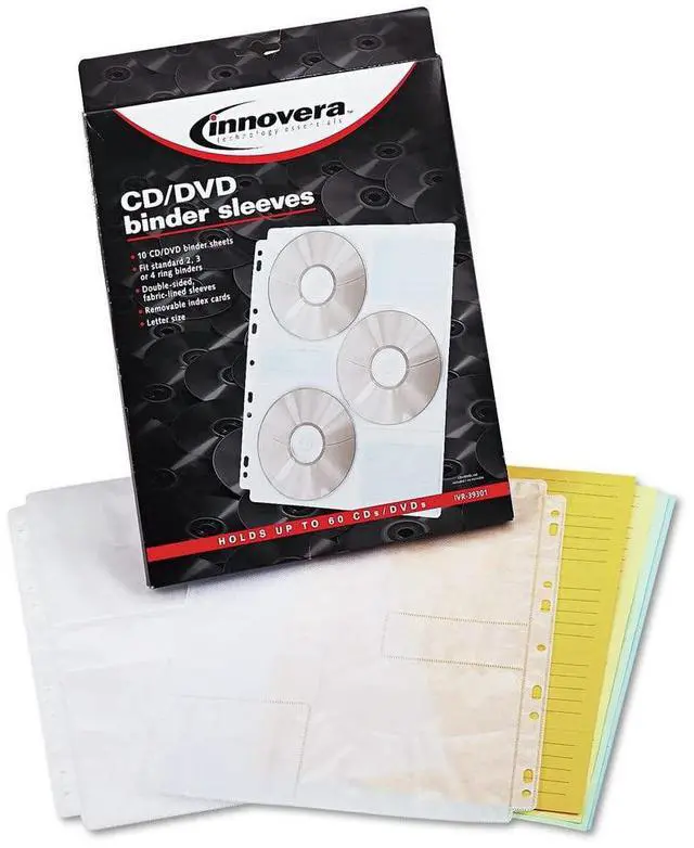 Store and organize your CDs and DVDs with these storage pages. Fabric-lined to protect against scratches. Work with any standard three- or four-ring binder or CD/DVD three-ring binder (sold separately).