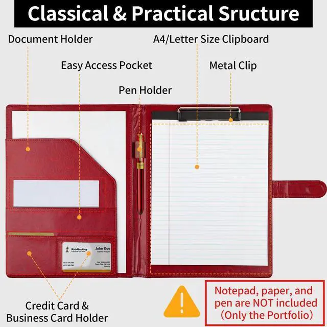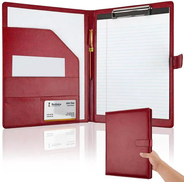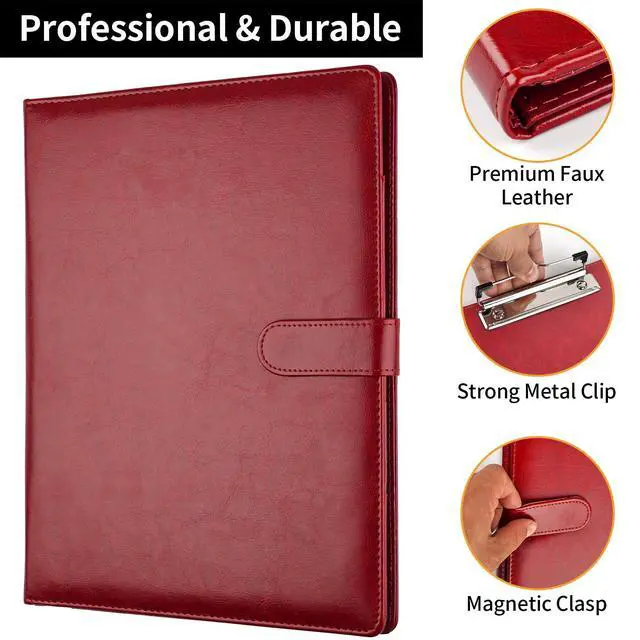 Portfolio Binder, Faux Leather Padfolio Clipboard with Storage, A4 Letter Size Black Portfolio Folder for Resume Notepad, Legal Pad Holder Writing Pad for Business, Office, Conference, School