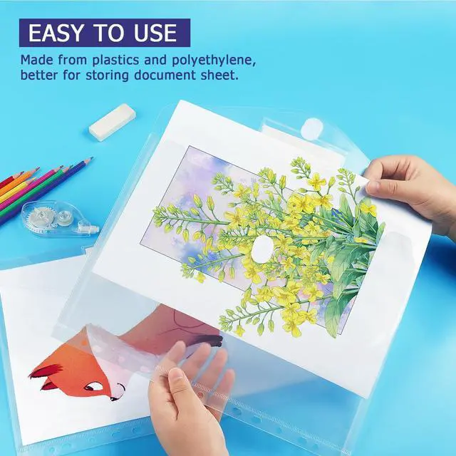 Our Binder Pocket is portable to keep your items organized and help you sort the clutter, 11 Holes punched, fit for standard 11 ring binders, Outside mini label pocket helps classify and identify your document, can be used at school, home, work, office travel, and business trip.