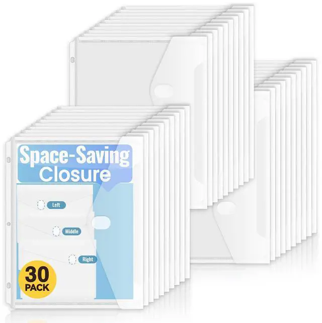 Sooez plastic 3 hole punch binder envelopes are the perfect additions to your standard binder. The staggered closures don't stack up when you put folders in a binder. Organize and store your essays, drawings, projects, loose papers and forms without hassle or cramming.