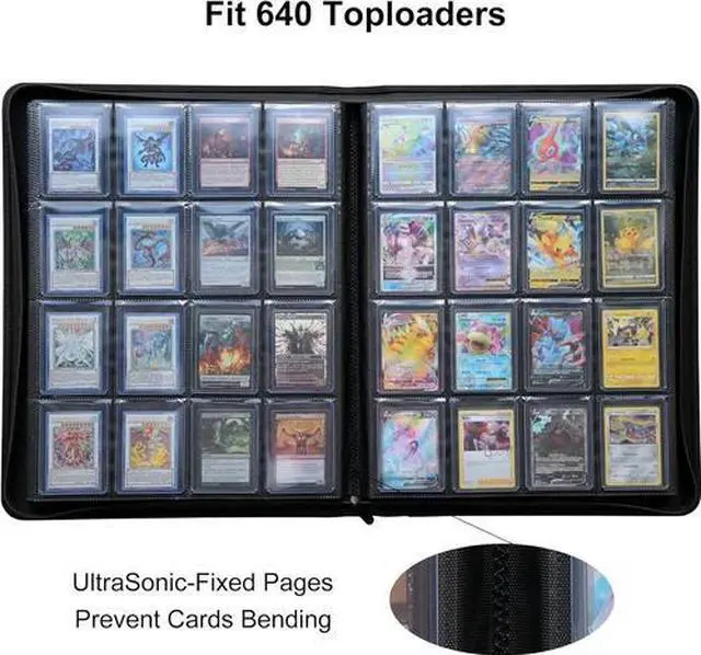 Grinowl 16 Pocket Toploader Binder, Holds 640 Top Loaders, Large Toploader Card Binder with Sleeves for Cards in 3" X 4" Toploaders