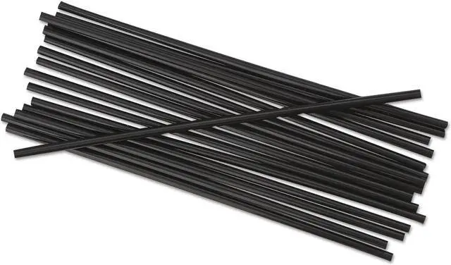 Stock your coffee station, break room or beverage counter with single-tube, stir-straws. The extra-rigid polypropylene aids in dissolving powdered creamers and granulated sugar in hot drinks like coffee and tea. The straws are unwrapped and ready to use or can be added to a dispenser or drink station. Durable and sturdy design is compatible with hot or cold drinks that need stirring. Color(s): Black; Color Family: Black; Material(s): Polypropylene; Size: 5.25".