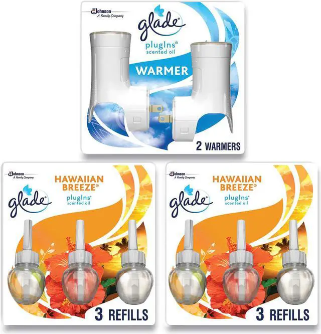 Add lasting and continuous fragrance to your living room, bedroom, busy bathroom, kitchen and other rooms. Create your own custom fragrance experience with the Glade Plugins scented oil customizable warmer. The warmer allows you to use any two of your favorite Glade Plugins scented oil refills and alternates between the fragrances daily, providing constant delight for you and your family. Up to 50 days of fragrance per refill when used on low setting. Scent: Hawaiian Breeze; Physical Form: Oil; Application: Warmer; Capacity (Volume): 0.67 oz.