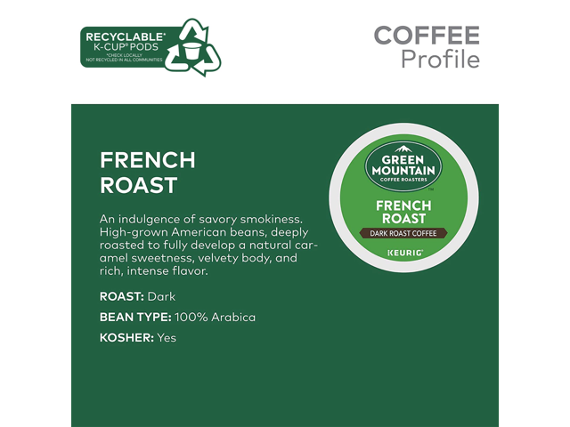 Green Mountain Coffee Roasters French Roast Coffee, Keurig Single-Serve K-Cup Pods, Dark Roast Coffee, 24 Count/Box