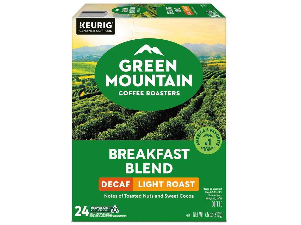 Green Mountain Coffee Roasters Decaffeinated Breakfast Blend Coffee, Keurig Single-Serve K-Cup Pods, Light Roast Coffee, 24 Count/Box
