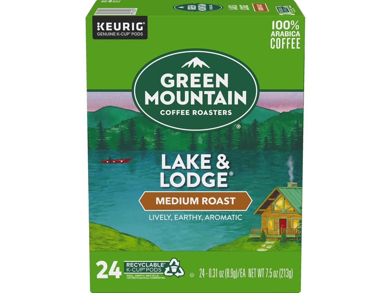 Green Mountain Coffee Roasters Lake & Lodge Coffee, Keurig Single-Serve K-Cup Pods, Medium Roast Coffee, 24 Count/Box