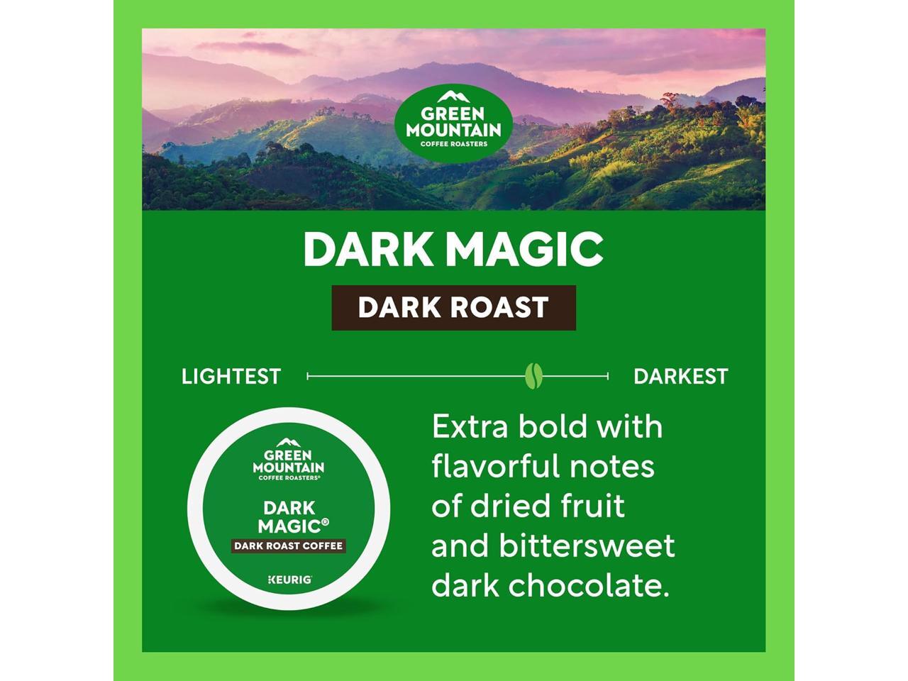 NOTES: Green Mountain Coffee Roasters® Dark Magic® delivers bold flavors of dried fruit and bittersweet dark chocolate.