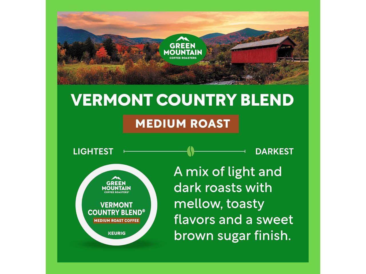 Green Mountain Coffee Roasters Vermont Country Blend, Keurig Single-Serve K-Cup Pods, Medium Roast Coffee, 96 Count/Carton