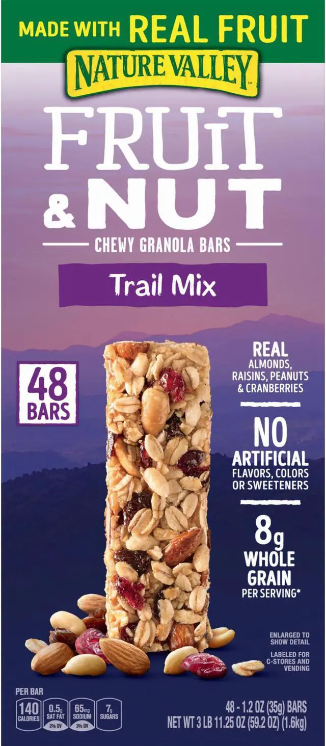 Energy from pure and natural ingredients brings together the goodness of whole grains and the nutritional benefits of calcium. Food Type: Granola; Flavor: Fruit & Nut Trail Mix; Capacity (Weight): 1.2 oz; Sugar Free: No.