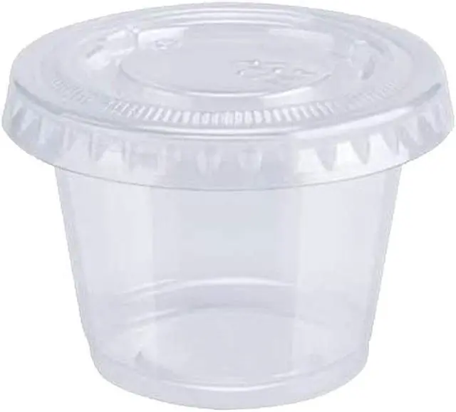 The Subcategory OS - Breakroom & Cleaning offers a case of 2500 Pack 1oz Plastic Clear Portion Cups, Souffle Cups. Clear Lids Sold Separately. This convenient portion control solution is designed to minimize sauce wastage and ensure precise serving sizes. The leak-free design guarantees a mess-free experience, while the stackable feature allows for space-saving storage, ensuring easy organization and accessibility. These versatile portion cups are perfect for serving condiments, salad dressings, and various sauces, making them an ideal addition to any breakroom or kitchen. For secure and hygienic storage and transport, clear lids are available for separate purchase, providing a complete solution for your needs.