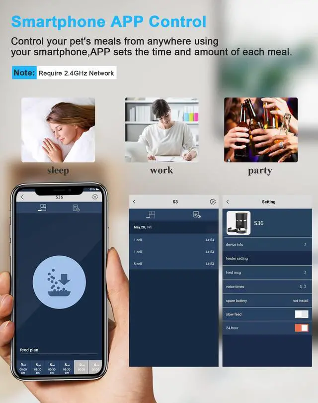 Connected to the Internet: Make a feeding schedule through the mobile app, and remotely control the machine to feed.