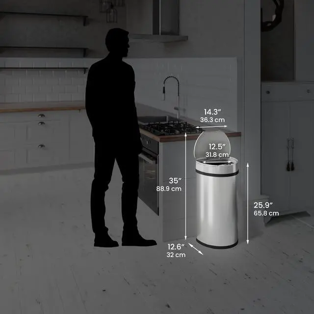 The Most Popular 13 Gal Semi-Round Sensor Trash Can with AbsorbX Odor Filter