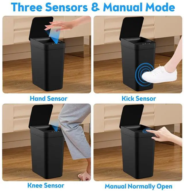 0.1 seconds quick wave sensor to open the lid, 5 seconds to close auto if no object is detected