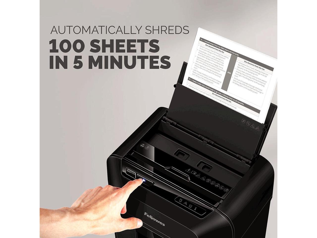 Two-in-one auto feed shredder for fast and productive shredding: With both auto feed and manual shredding capabilities, automatically shred up to 100 sheets in 5 mins. Bin capacity: 4.5 gallon pull-out bin for easy waste disposal. 1-year manufacturer limited warranty; 3-year warranty on cutter.