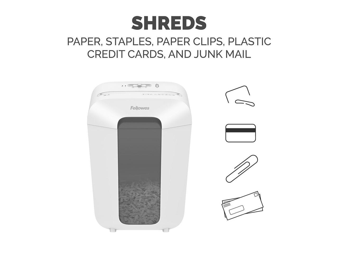 - Shreds 11 sheets per pass; in addition to paper, this shredder also shreds through staples, paper clips, plastic credit cards, and junk mail. Provides sufficient security level (level P-4). 1-year manufacturer limited warranty; 5-year warranty on cutter.