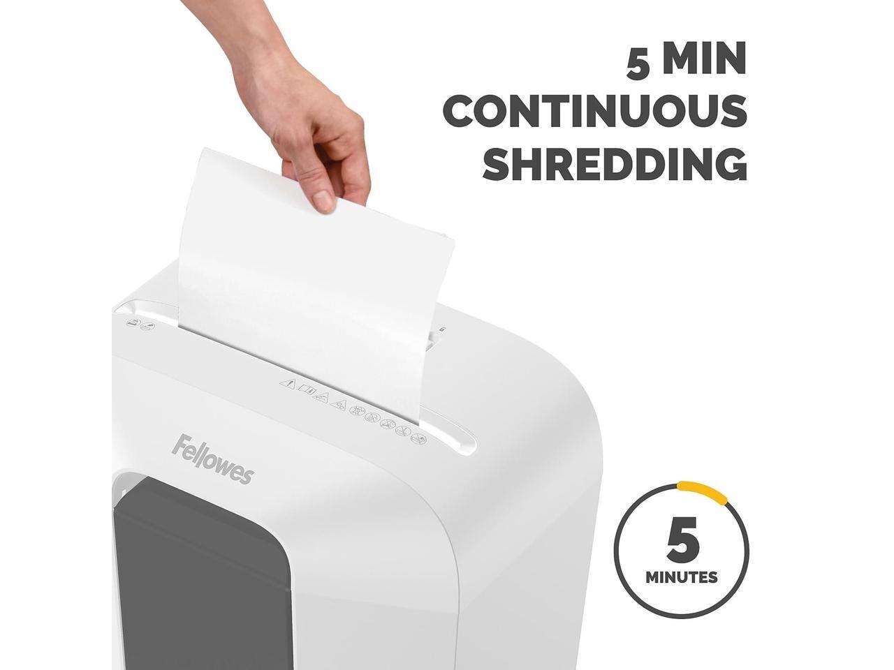 - This ultraefficient paper shredder for home and office runs up to 5 continuous minutes before a 30-minute cooldown. Minimizes noise to reduce distractions, making this shredder the perfect fit for home offices and shared workspaces.
