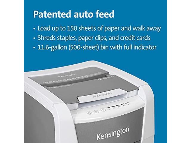 Kensington OfficeAssist Auto Feed Shredder A1500-HS Anti-Jam Micro Cut - Continuous Shredder - Micro Cut - 6 Per Pass - for shredding Paper, Staples, Paper Clip, Credit Card, CD, DVD - 0.079" x 0