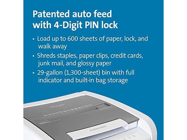 Kensington OfficeAssist Auto Feed Shredder A6000-HS Anti-Jam Micro Cut - Continuous Shredder - Micro Cut - 10 Per Pass - for shredding Paper, Staples, Paper Clip, Credit Card, Junk Mail, Glossy ...