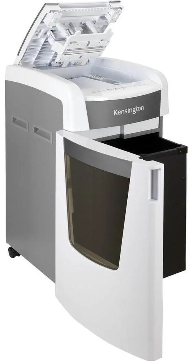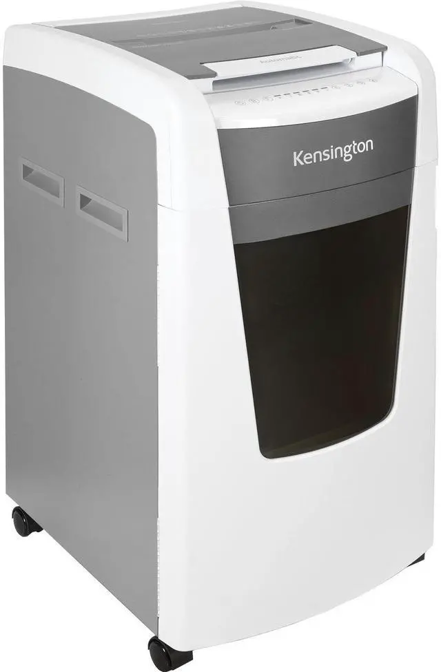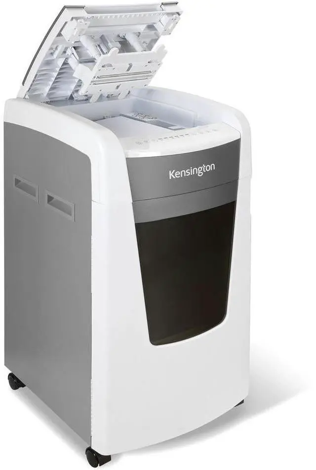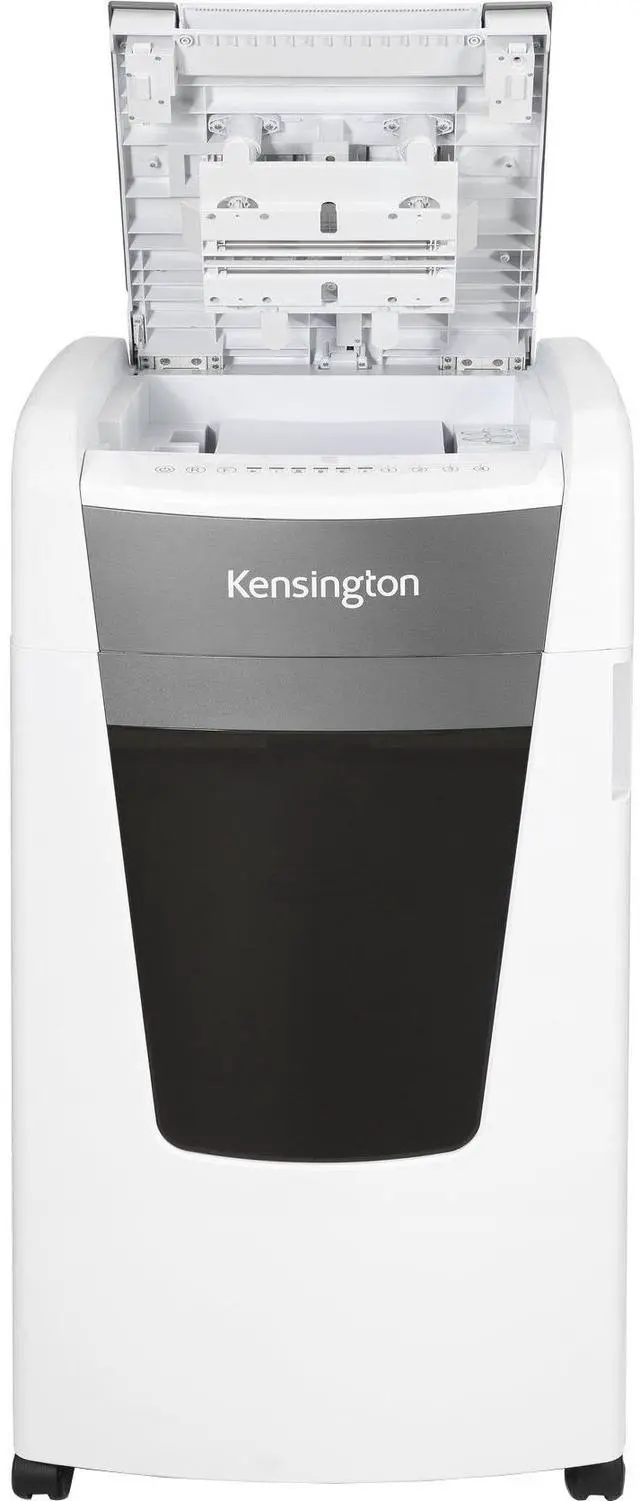 240-Minute Continuous Run Time Runs without overheating, for large jobs. 29-Gallon (1, 300-Sheet) Bin with Full Indicator and Bag Storage Shred more, empty less. An indicator lets you know when the bin is full, and built-in bag storage keeps new bags ready. Intelligent Power Save Automatically switches to this mode when not in use (but still turned on) to save energy. Sturdy Casters Make it easy to use the shredder wherever you need it. Rest assured knowing you're covered by Kensington. The 600-sheet OfficeAssist Auto Feed Shredder A6000-HS Anti-Jam Micro Cut speeds and secures high-volume shredding, helping to make larger offices more productive.