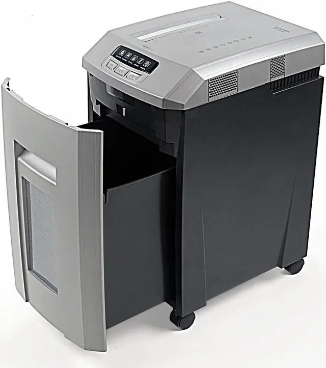 • Micro-Cut with 15 sheet capacities; destroys CDs, DVDs, credit cards and small paper clips